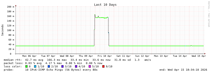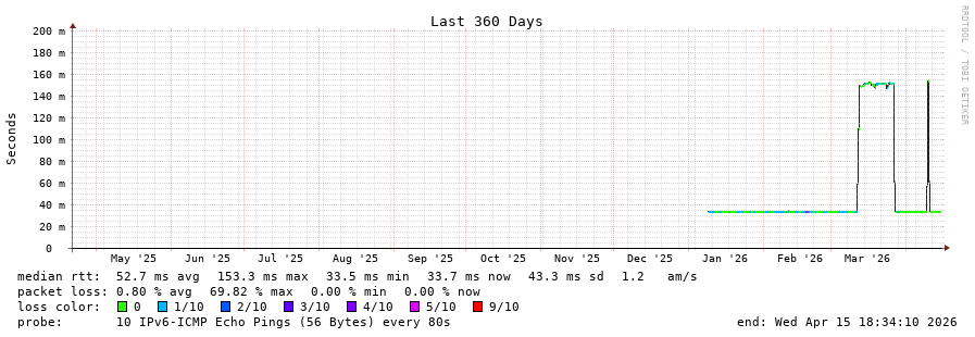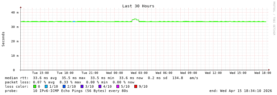 traceroute to 2001:4350:1:1::ff90 (2001:4350:1:1::ff90), 30 hops max, 80 byte packets - Generated at 2026-04-15 18:00:01