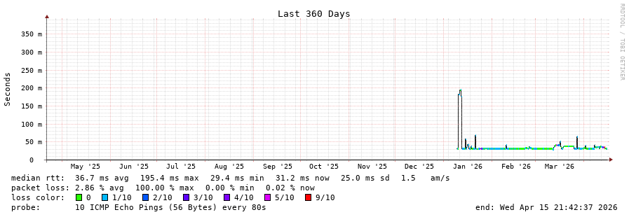 13 > 195.22.192.25 (195.22.192.25) [AS6762] 35.847ms 34.774ms 31.938ms