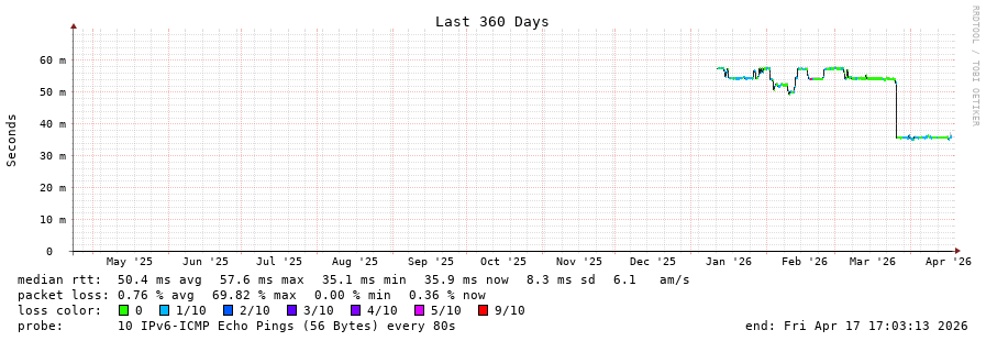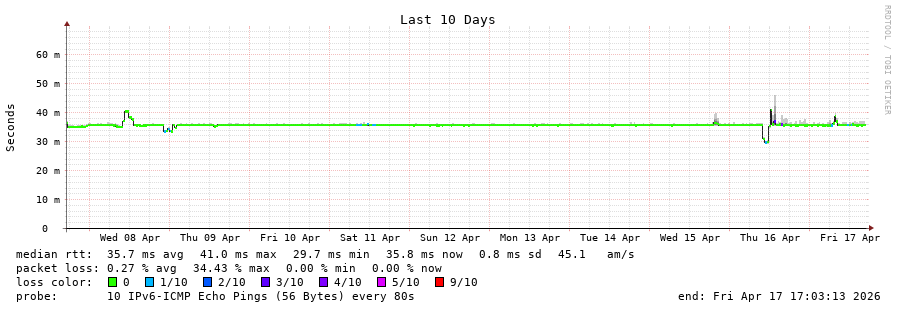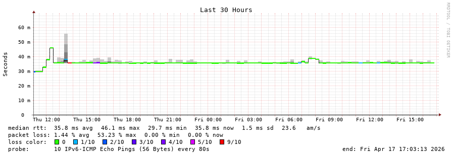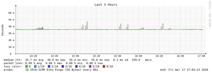 traceroute to 2a0b:2f00:0:234::151 (2a0b:2f00:0:234::151), 30 hops max, 80 byte packets - Generated at 2026-04-17 17:00:01