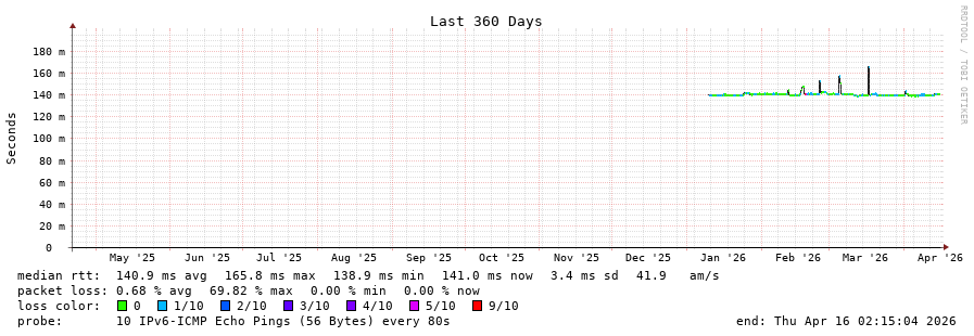 traceroute to 2604:2dc0:30b::2:0:2c0 (2604:2dc0:30b::2:0:2c0), 30 hops max, 80 byte packets - Generated at 2026-04-15 22:00:01