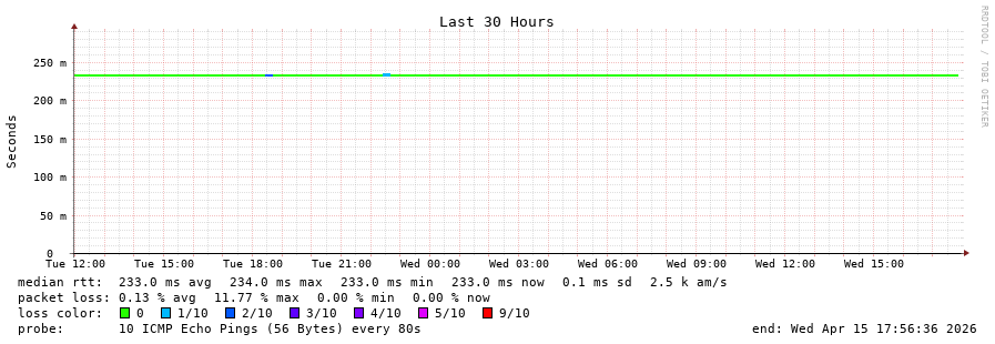 12 > 185.70.203.57 (185.70.203.57) [AS6762] 236.757ms 236.601ms 236.555ms