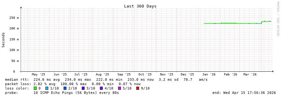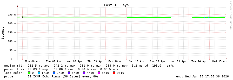 11 > 195.22.220.125 (195.22.220.125) [AS6762] 232.497ms 232.583ms 232.553ms