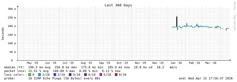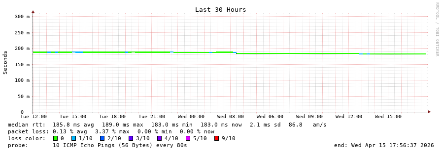 15 > 69.79.100.135 (69.79.100.135) [AS23520] 153.640ms 153.487ms 153.535ms