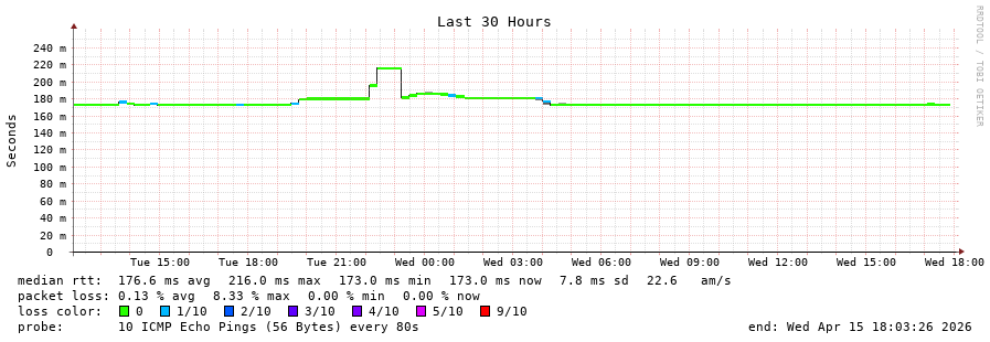 traceroute to 170.80.83.174 (170.80.83.174), 30 hops max, 60 byte packets - Generated at 2026-04-15 17:45:01