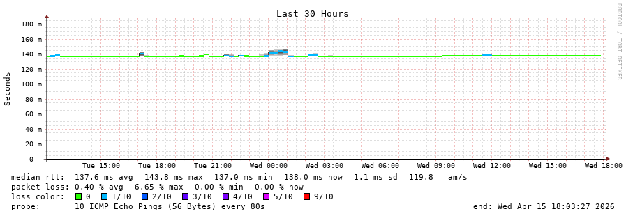16 > 38.183.112.27 (38.183.112.27) [AS269749] 137.723ms 137.694ms 137.705ms