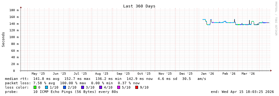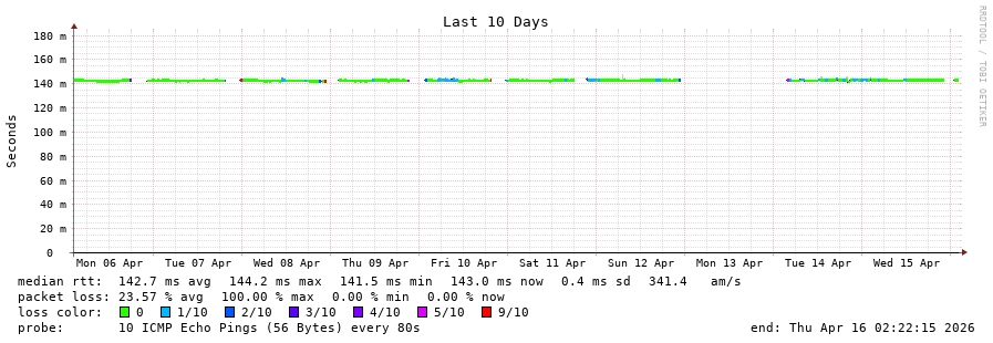 12 > 138.0.41.59 (138.0.41.59) [AS52320] 139.157ms 139.162ms 139.119ms
